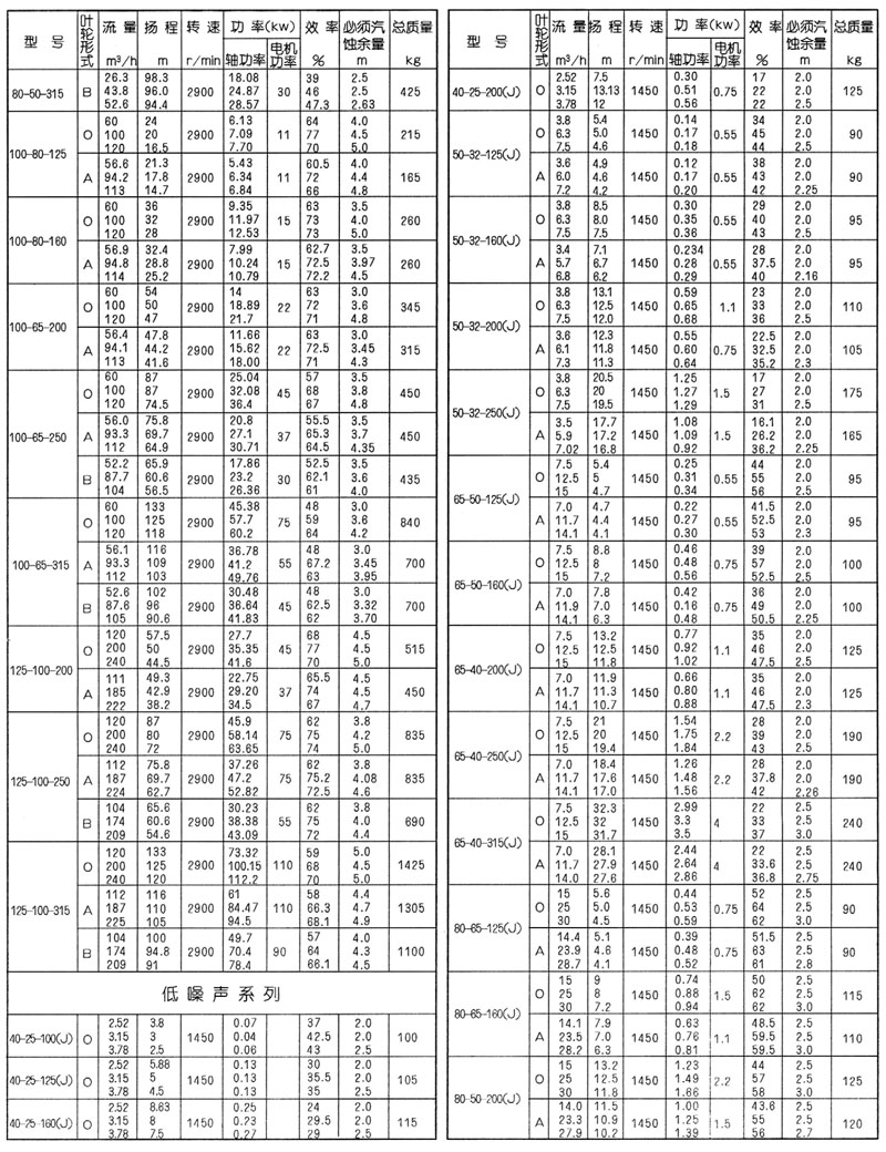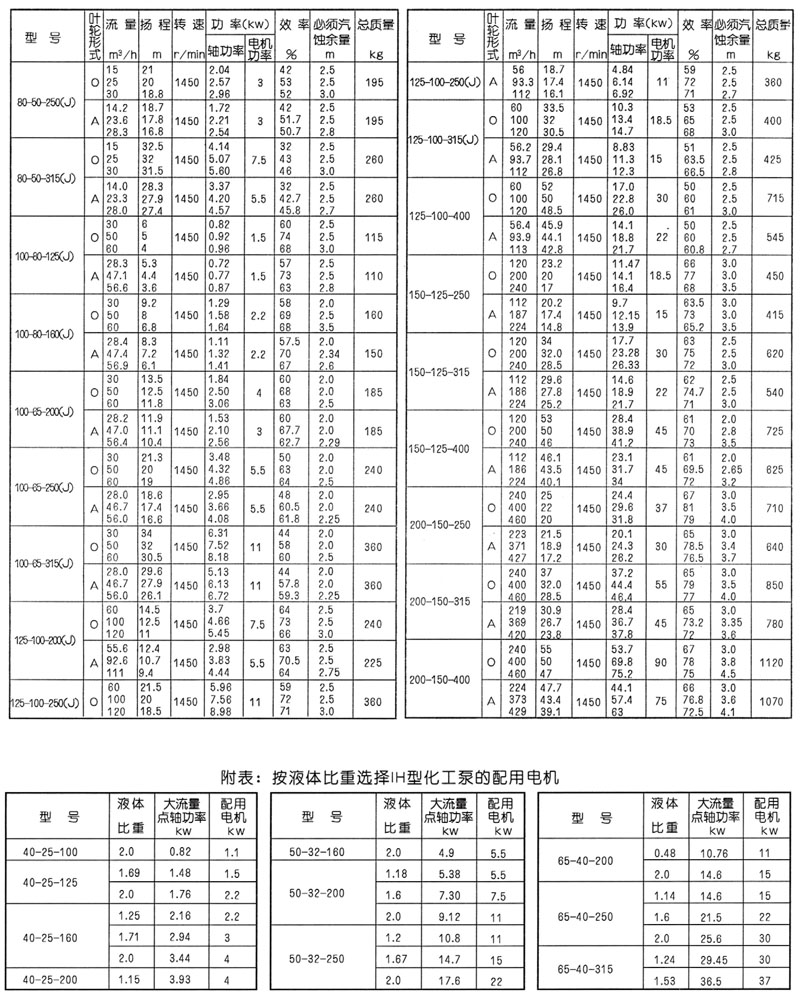 附(fù)表內列出了介質比重較大時電機的選擇方法,供(gòng)用戶(hù)參考。