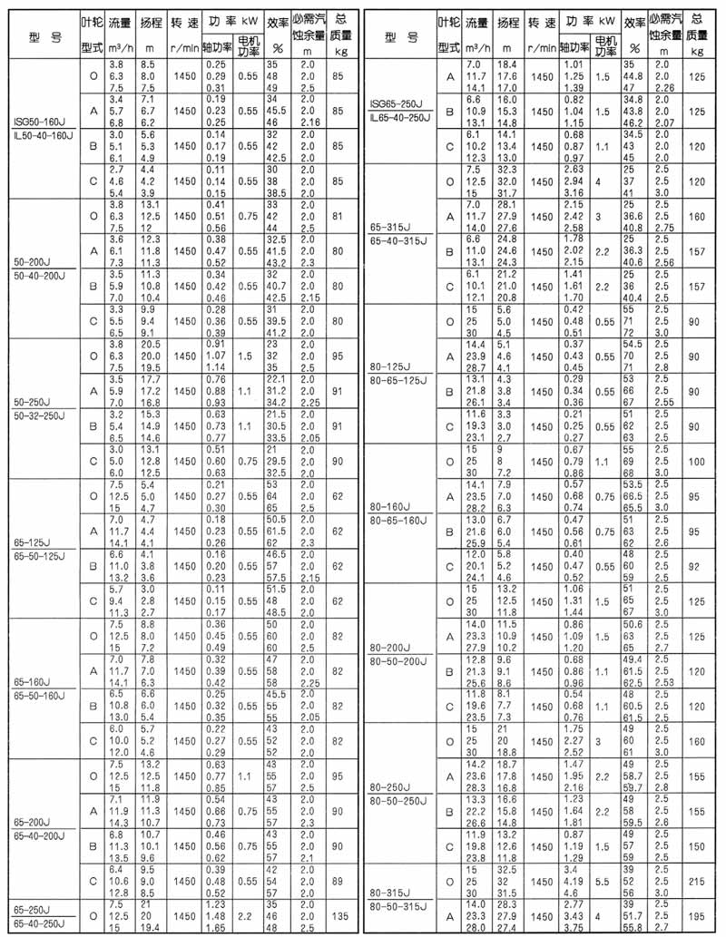 口徑125的ISG型泵,有兩種流量範圍,我(wǒ)們在(zài)型號後加(1)和(II)以示區別,如流量160m/h:ISG125-250(1);流量200m3/h:ISG125-250(1I)。