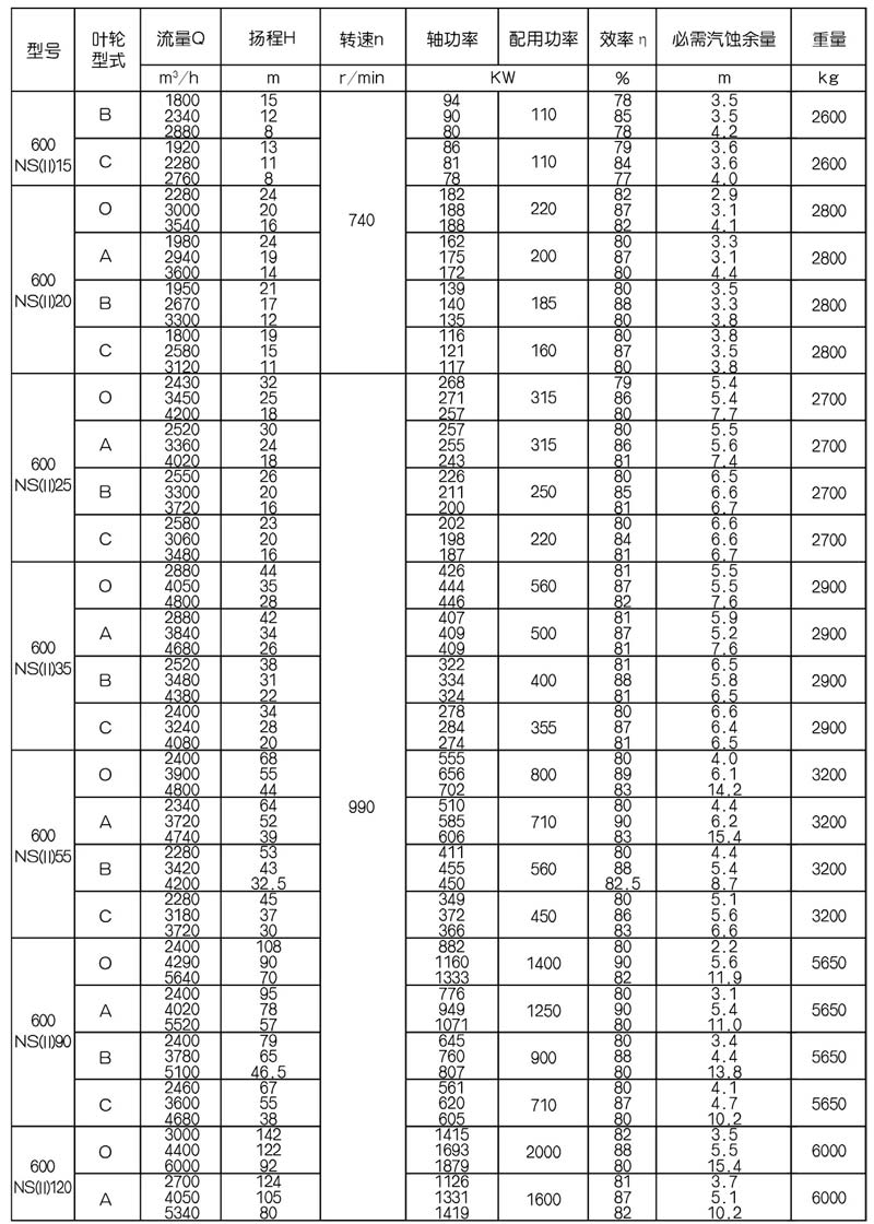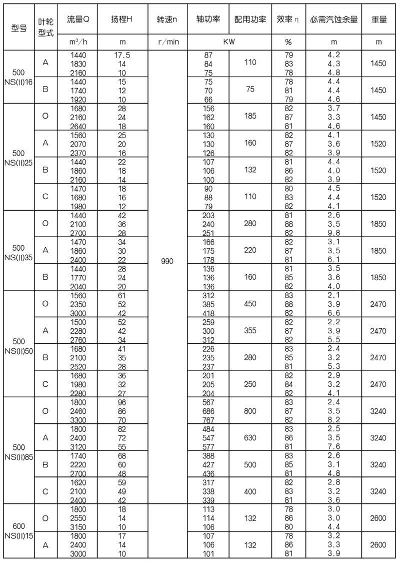 NS(Ⅱ)型泵具有很高的(de)效率,在較寬的流(liú)量範圍內具有(yǒu)很高(gāo)的運行效率,可以降低運行(háng)費用(yòng)和選(xuǎn)用功率較小的電(diàn)機,是節(jiē)能的(de)高效率(lǜ)中開泵。