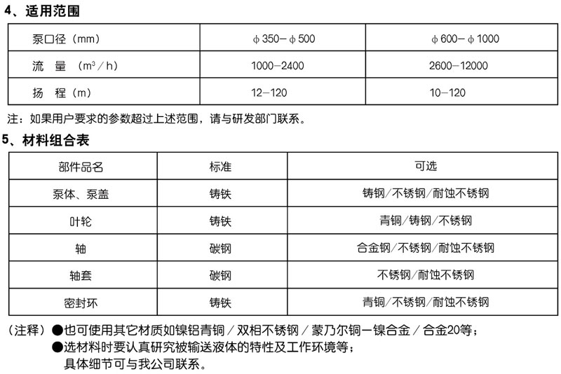 多種多樣的材料組合使NS(Ⅱ)型泵適(shì)用於更廣泛的領(lǐng)域,根據不(bú)同的要求,選擇不同的材料組合。