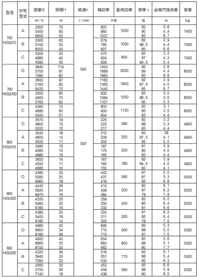 NS(Ⅱ)型泵經特殊設計具有卓越的抗汽(qì)蝕性能,與傳統雙吸泵相比,可以節約基建費用。